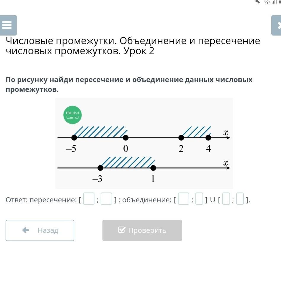 По рисунку найди пересечение и объединение данных числовых промежутков.