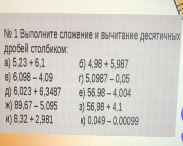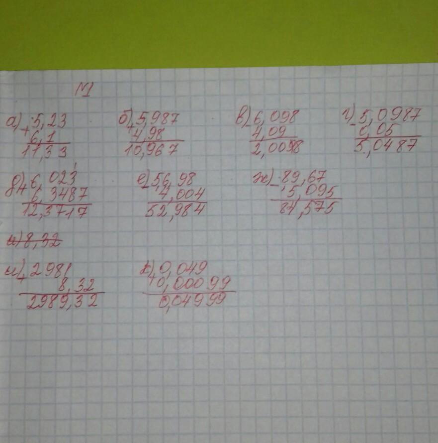 и) 8,32 + 2 981 К) 0,049 – 0,00099