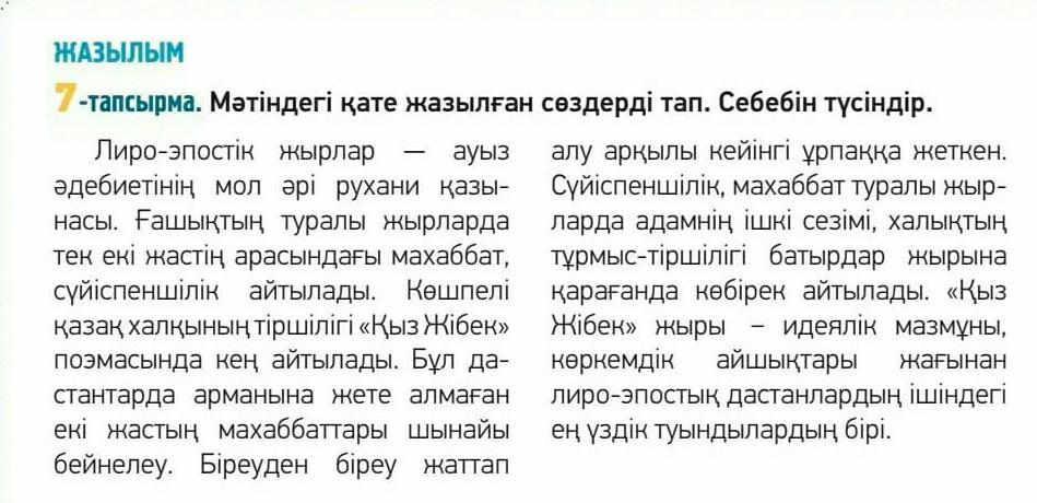 Берілген мәтіндегі қате жазылған сөздерді теріп жазамыз/ Выпишите слова в которых допущены ошибки