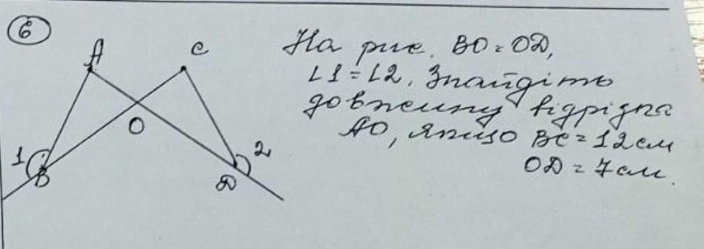углы1=2, углы при т. О накрест лежащие, а значит равны. Поэтому АО= тоже 5 см и ВС=ДА , т е =12см