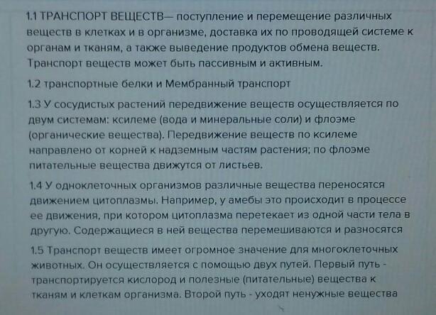 1. В живых организмах, включает доставку необходимых соединений к определённым органам и тканям, всасывание их клетки и передвижение внутри клеток, а также выведение продуктов обмена веществ.