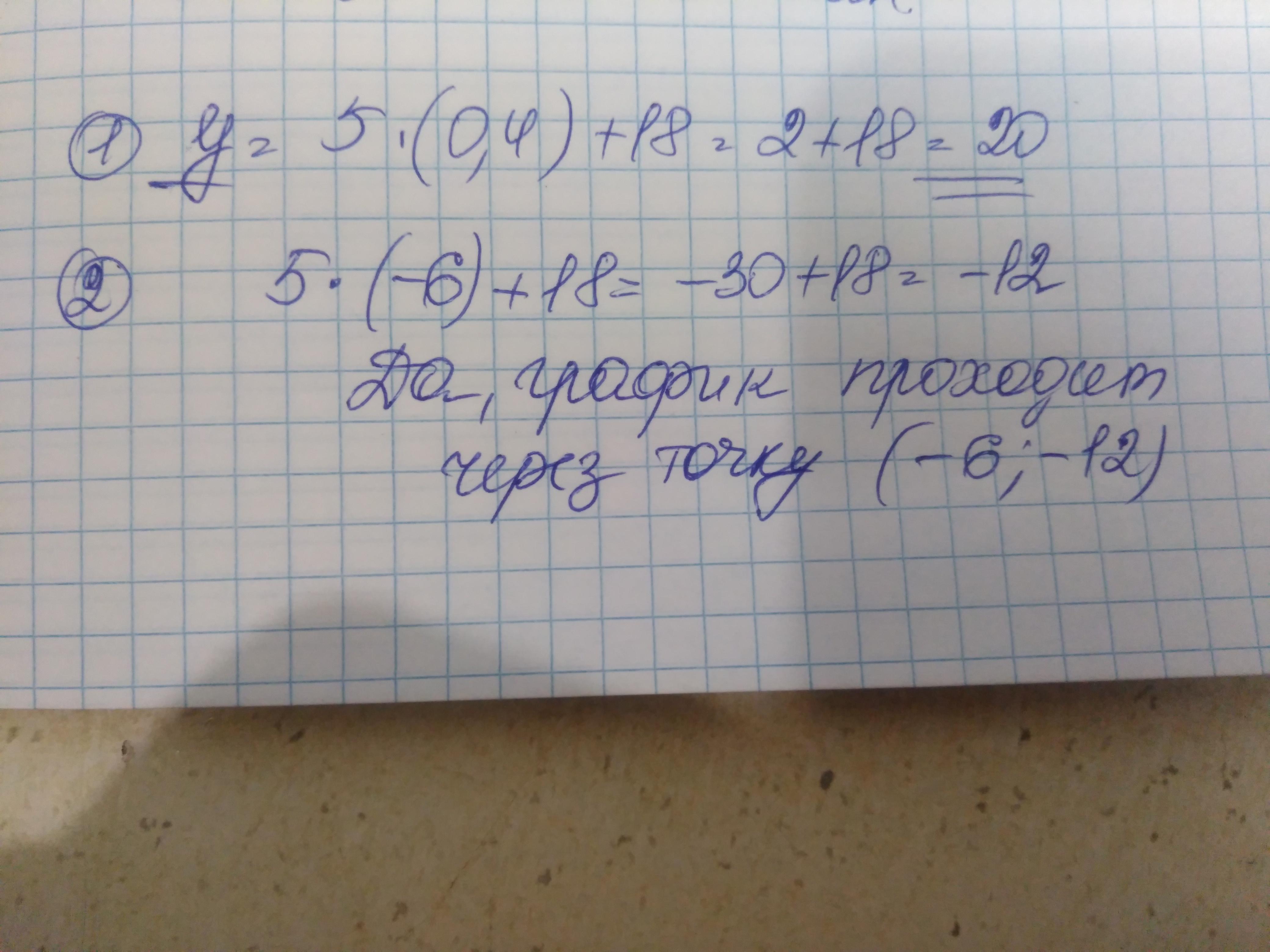 функция задана формулой y=5x+18 определите значение y если x=0,4 значение x при котором y=3 проходит ли её график через точку c (-6;-12) с графиком пожалуйста
