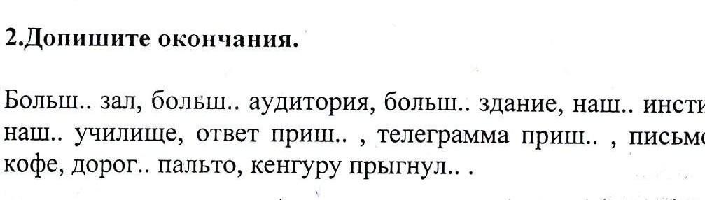 Большой зал,большая аудитория,большое здание, наше училище,ответ пришёл,телеграмма пришла, дорогое пальто,кенгуру прыгнул