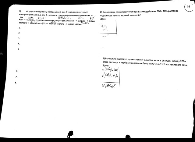2) KOH+HNO3=KNO3+H2O m(KOH)=300 г *0,1=30 г n(KOH)=30 г /56г/моль=0,54 моль n(KOH)=n(KNO3)=0,54 моль (по уравнению) M(KNO3)=101г/ моль M(KNO3)=10 г/ моль1*0,54 моль=54,54г