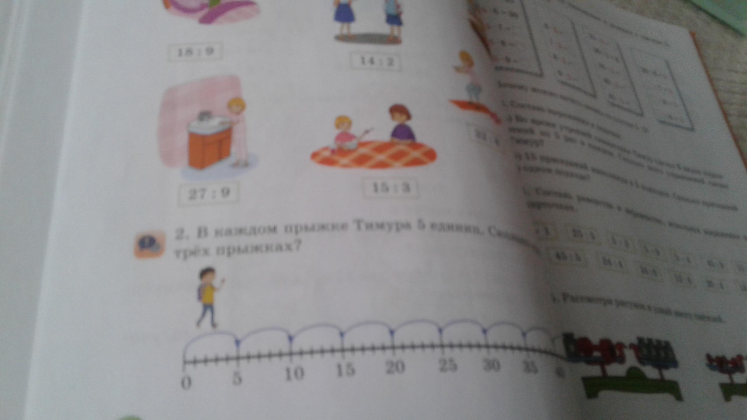 В каждом прыжке Тимура 5 единиц. Сколько единиц в двух, трёх прыжках?