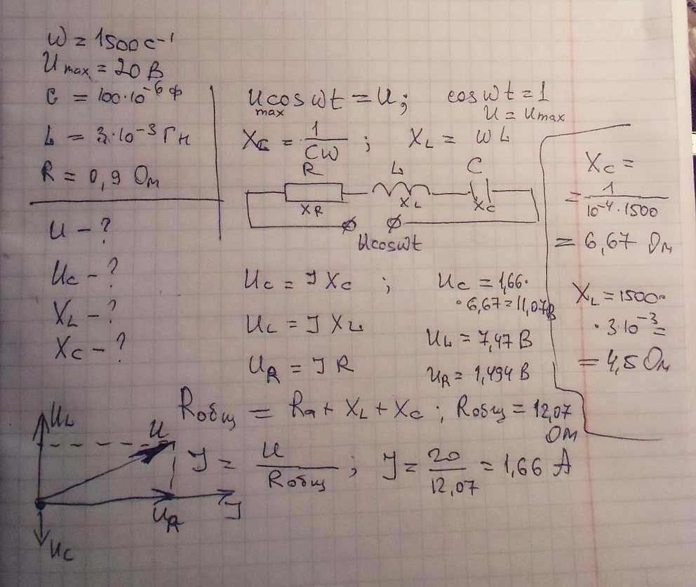 2) значения сопротивлений катушки индуктивности XL и конденсатора XC;