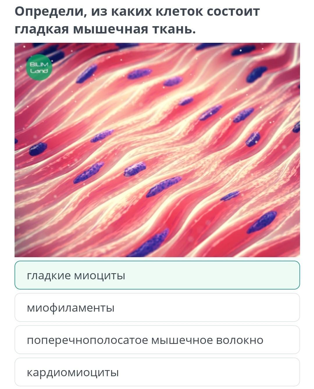 определи из каких клеток состоит гладкая мышечная ткань ?