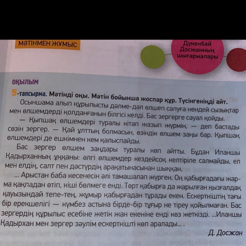 Мәтінді оқы. Мәтін бойынша жоспар құр.