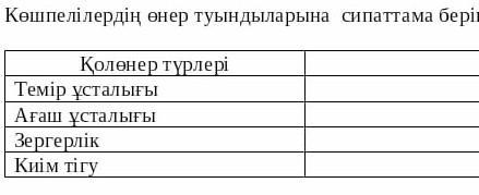 Темір ұсталығы: Темірмен өзін-өзі қорғайтын құрал жасаған. Ағаш ұсталығы: Ағашты отты жағу үшін қолданған. Зергерлік: алтын, күміспен бұйымдар жасаған. Киім тігу: Киімдер тіккен.