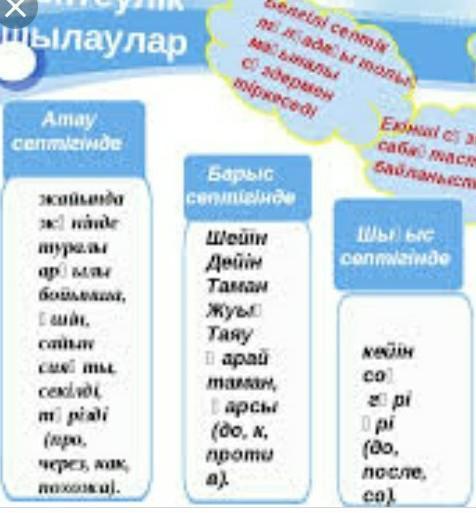 Септеулік шылаулар тіркесіп келетін септік түрлерін анықта.