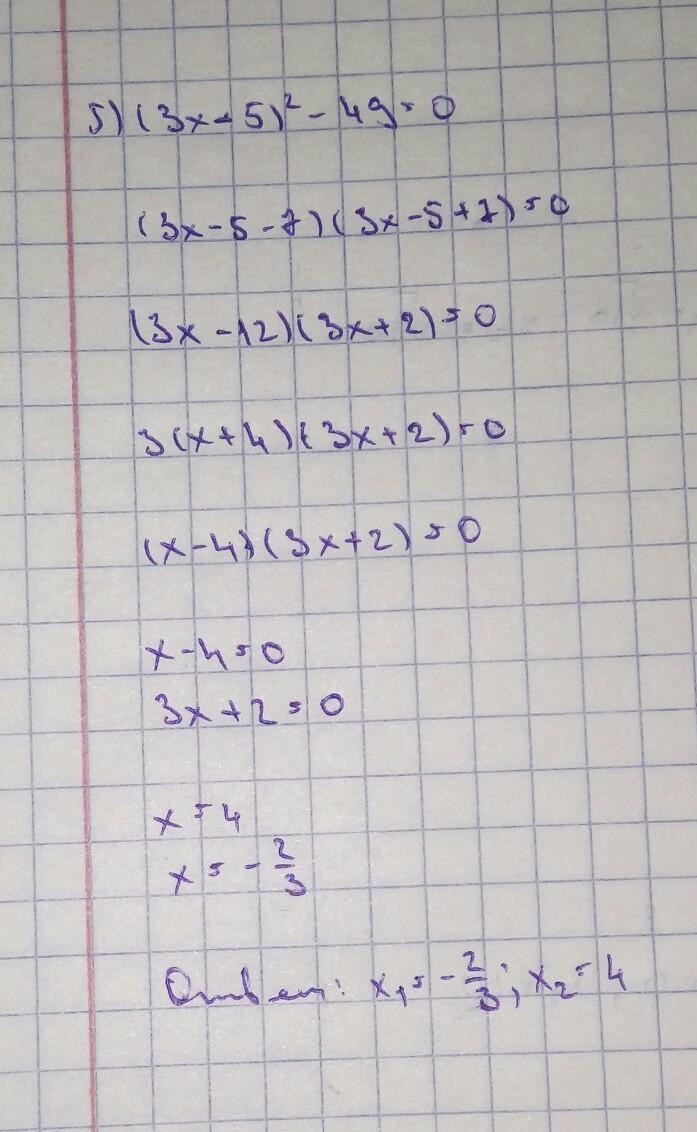 (3x-5)^2-49=(3x-5)^2-7^2=(3x-5-7)(3x-5+7)=(3x-12)(3x+2)