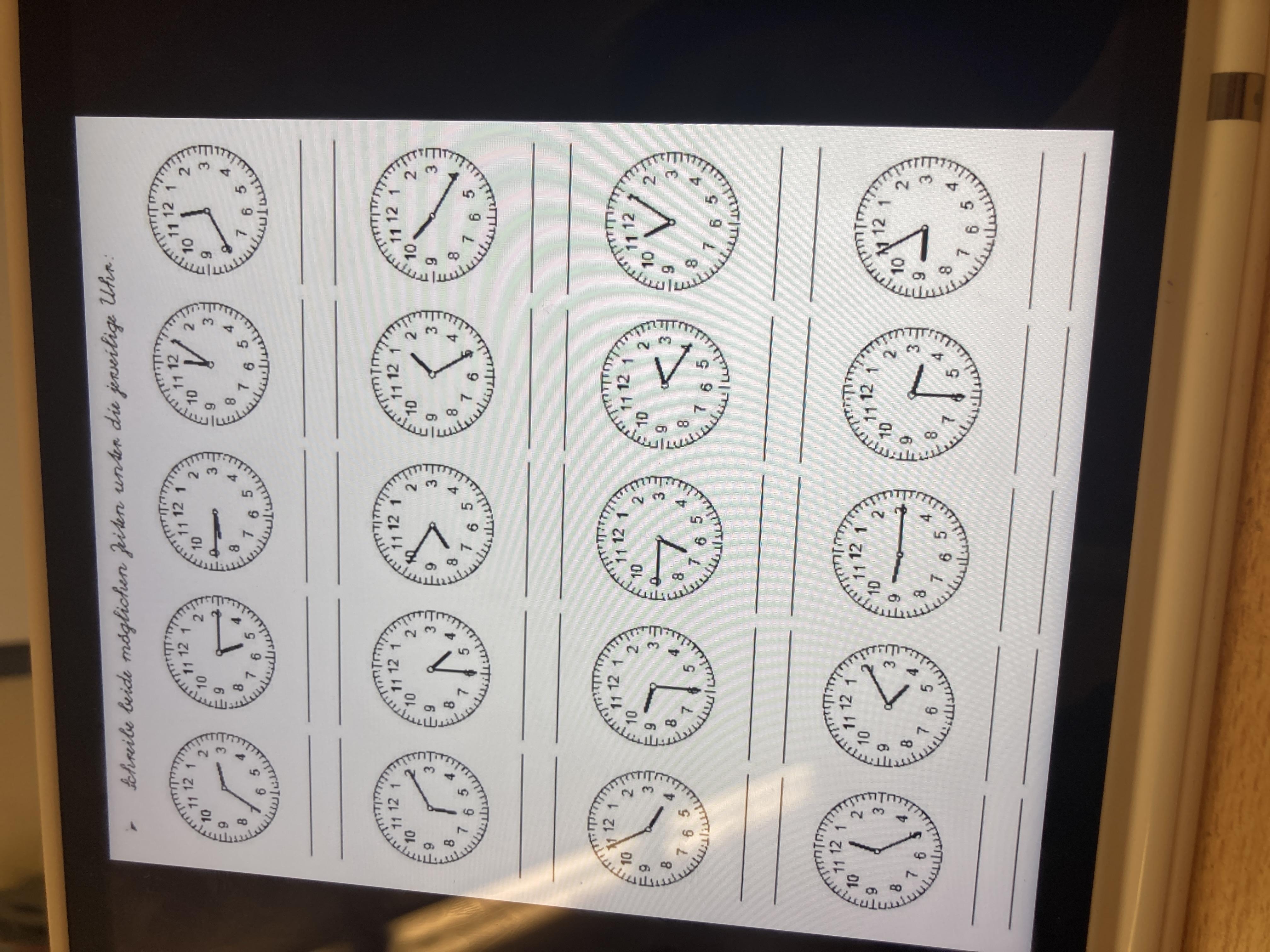16. Es ist fünf (Minuten) vor halb eins (Uhr).