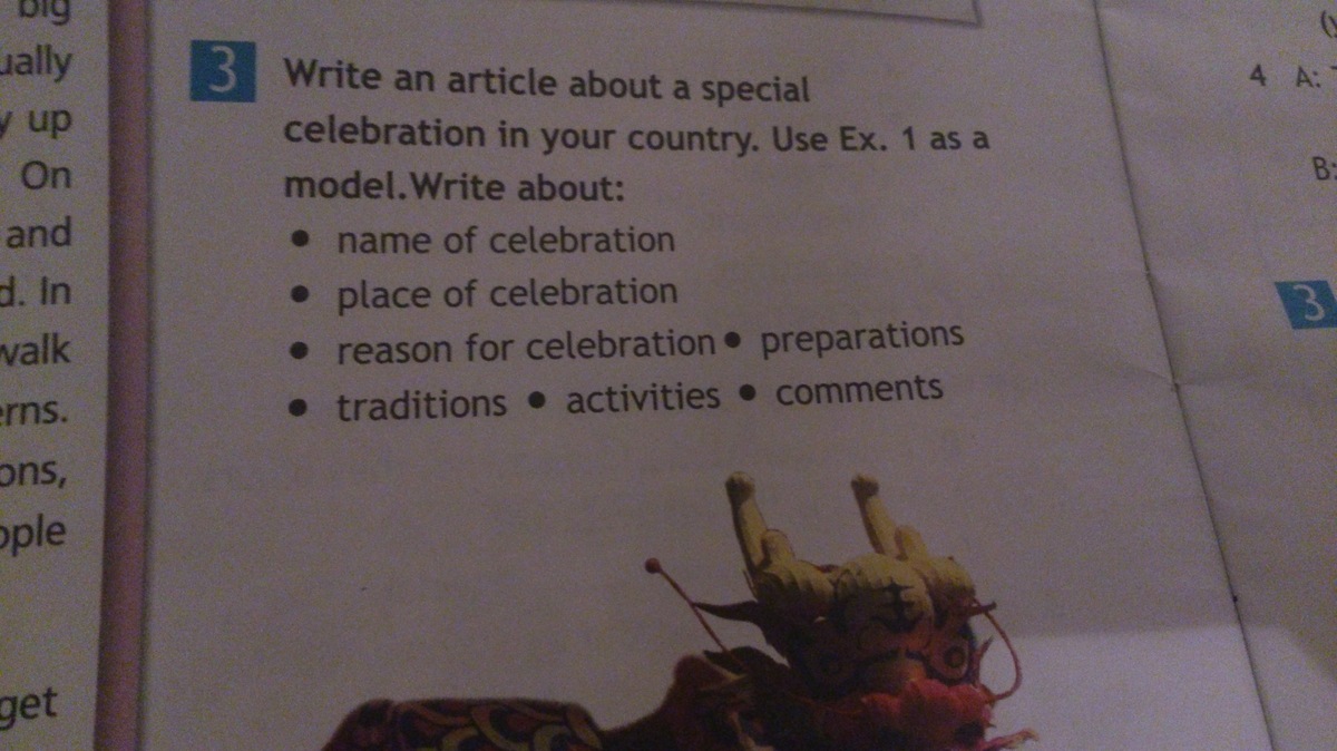 as far as I know englishmen celebrate Christmas mostly. But in my country we celebrate New year. Usually, we - my family and I, celebrate it at home, but sometimes we go outside to the main square of our city, where big New Year tree is installed. It's very important holiday for us, because we bid to the old year farewell and meet the New one. That's why all preparations starrt from early morning. While kids are playing, mothers cook different traditional dishes and salads like pelmeny, seledka pod shuboy and etc. usually, when bells chime at 00:00 am, adults make wish for succesful year and drink chanpagne.