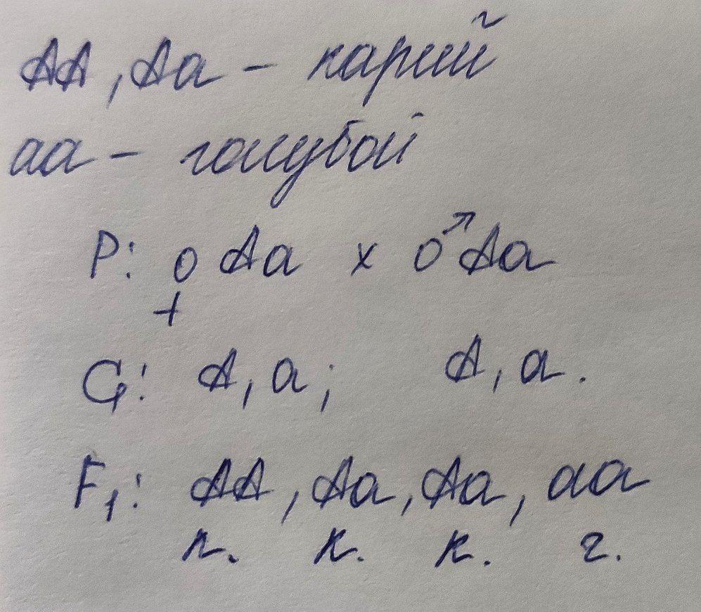 Так как родители гетерозиготы, то они образуют гаметы двух типов (А и а). Совершая всевозможные комбинации, получаем расщепление 3:1 по фенотипу, где 3 части, или 75% от всех детей, кареглазые, а 1 часть, или 25%, голубоглазые.