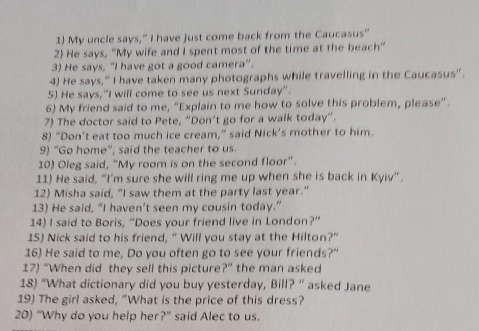 1) Мой дядя говорит: «Я только что вернулся с Кавказа»
