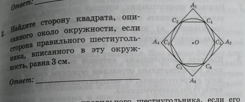 2)Т.к. окружность вписана в квадрат, то сторона квадрата равна двум радиусам окружности, то есть 2*3=6
