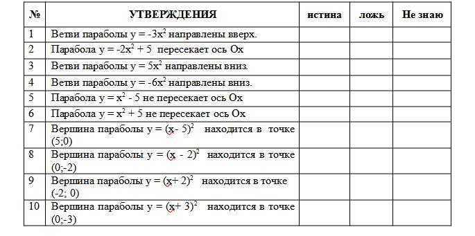 8) Ложь. Сначала найти x₀ по формуле x₀ = -b/2a, потом подставить значение x₀ в уравнение и вычислить у₀.