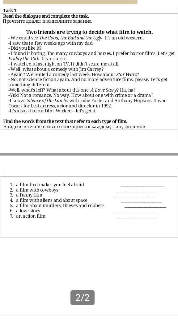 Ответ: 1.horror films