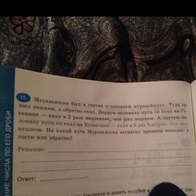 Муравьишка затратил меньше времени на путь в гости, чем на обратный путь.