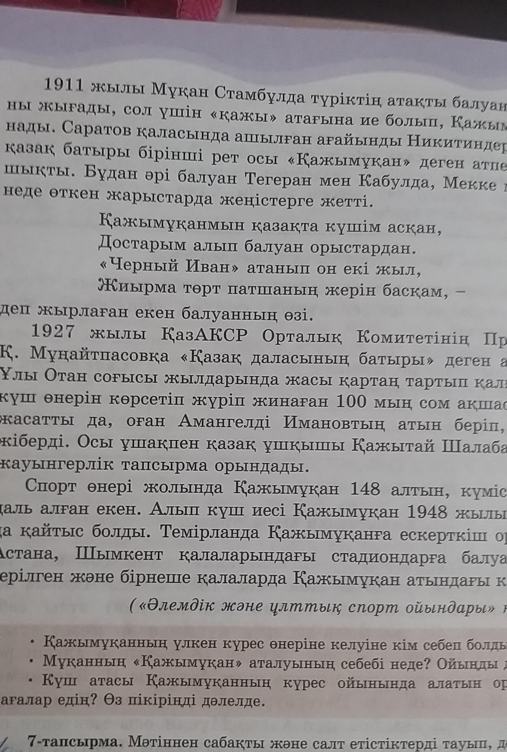 6-тапсырма. Мәтінді оқы.