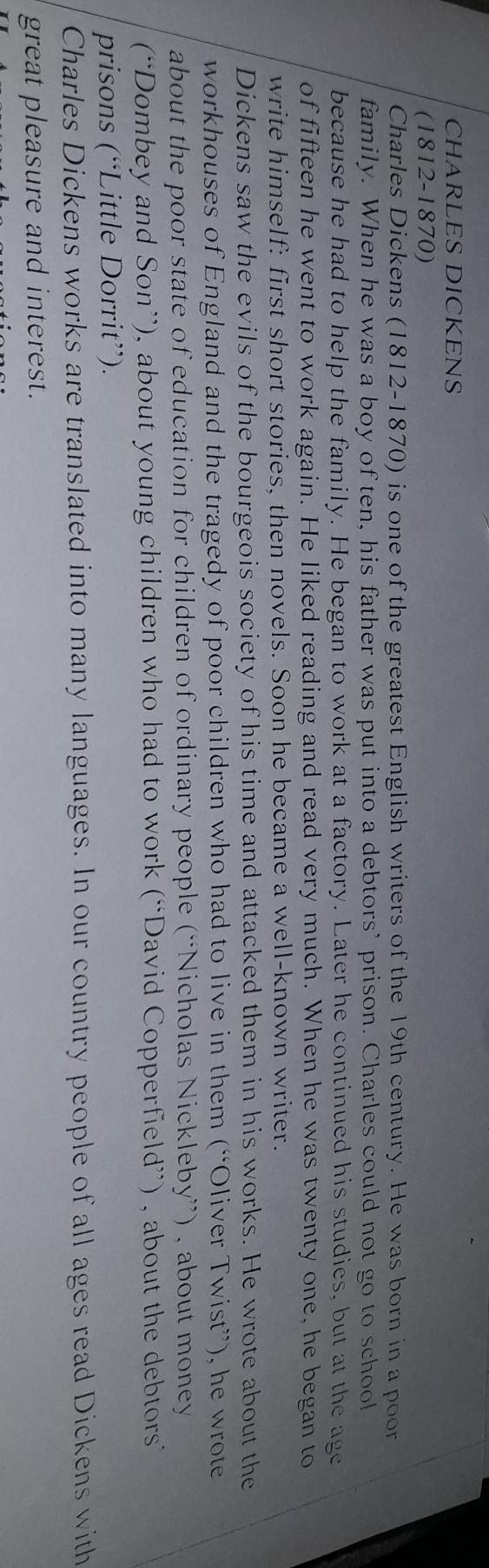 2. When he was a boy of ten ,his father was put into a debtors prison.