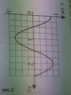 4.На рисунке 2 изображена зависимость смещения колеблющегося груза на пружине от времени.Какова частота колебаний груза ?(см.рис.2)