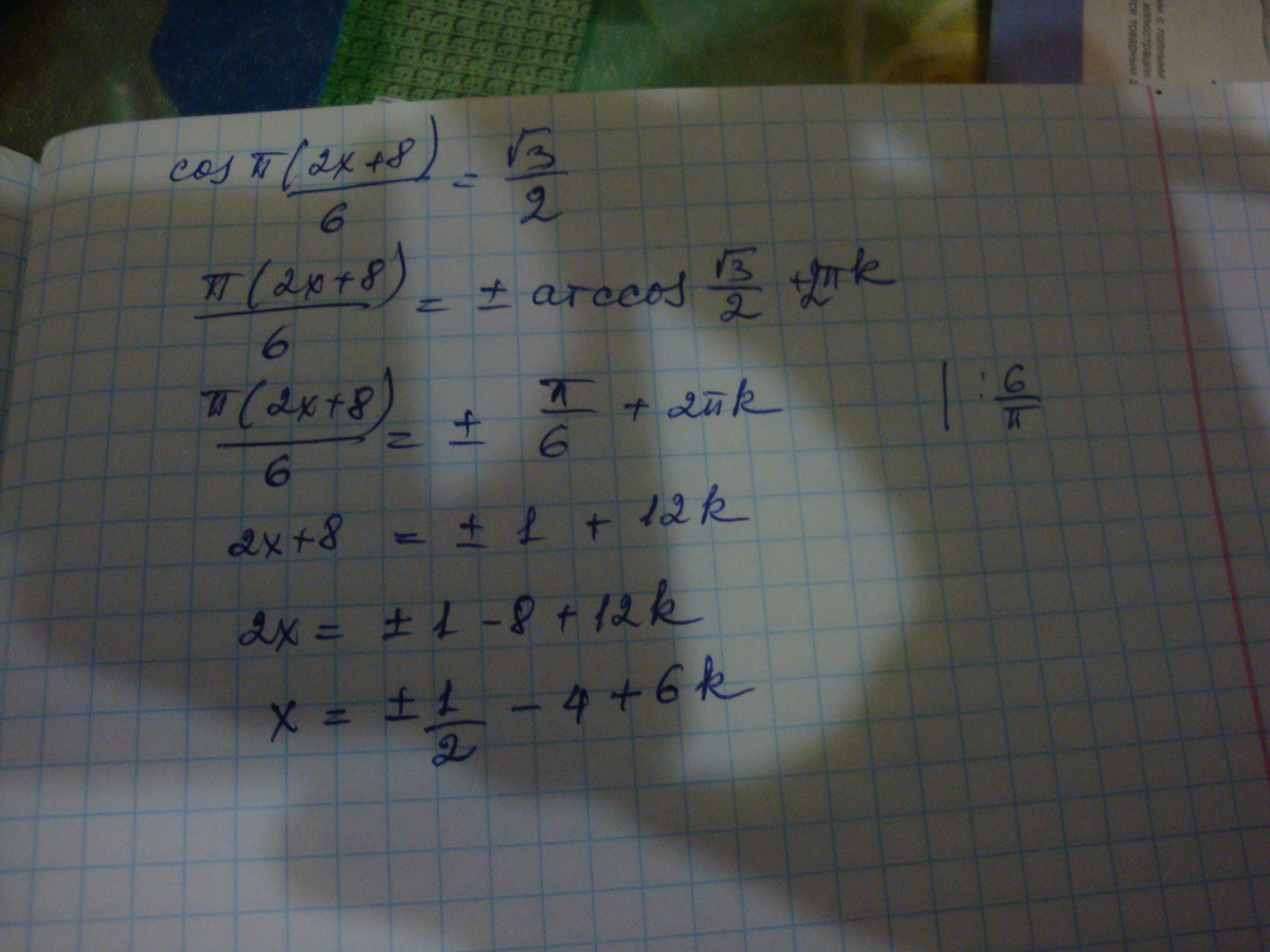 найдите корень уравнения: cosП(2х+8)/6=корень из 3/2 в ответе запишите наименьший положительный корень