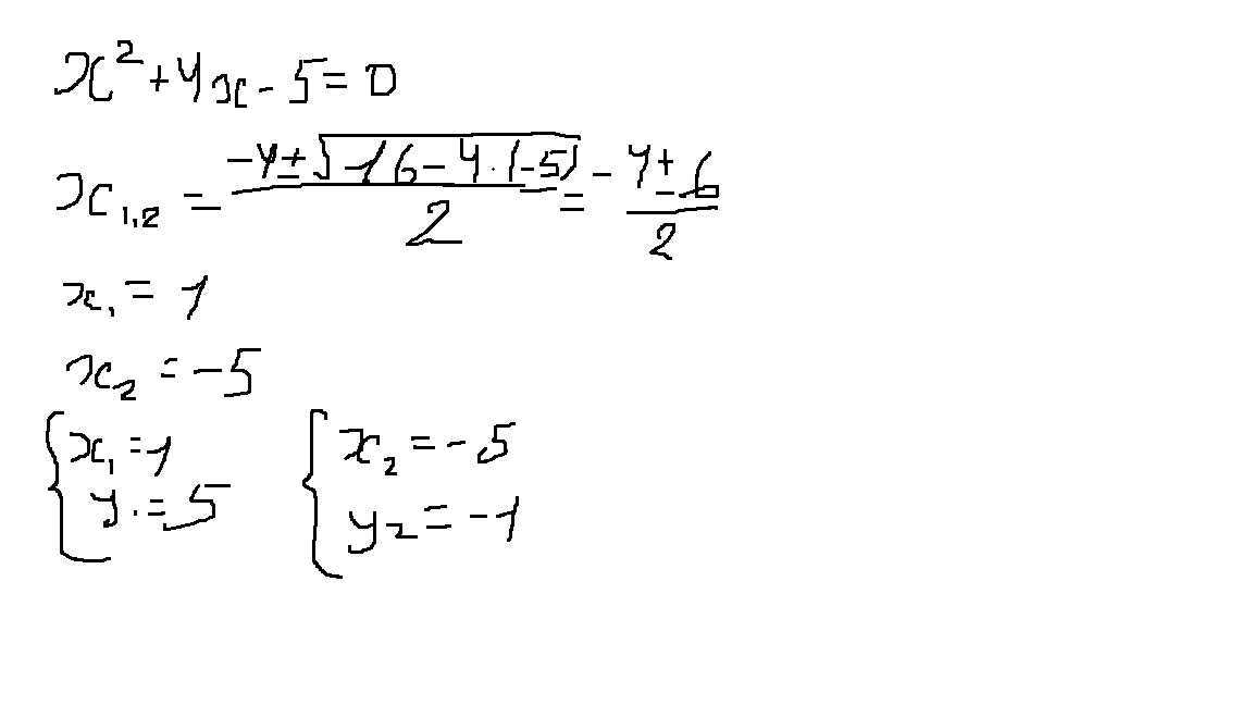 х1+х2=-4 и х1*х2=-5⇒х1=-5, у1=-5+4=-1 и х2=1,у2=1+4=5