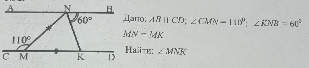 BNK и ANK - смежные , Т.к. сумма смежных углов равна 180° , то MNK=180°-60°=20°