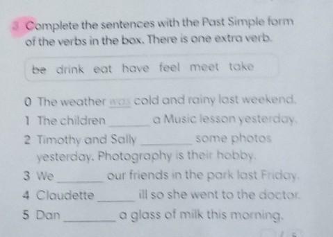 Drink - drank, eat - ate, have - had, feel - felt, meet - met, take - took