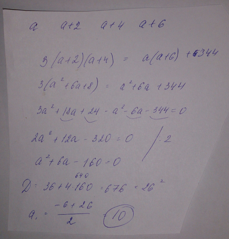 Найти четыре последовательных четных натуральных числа,если утроенное произведение второго и третьего чисел на 344 больше произведения первого и четвёртого чисел