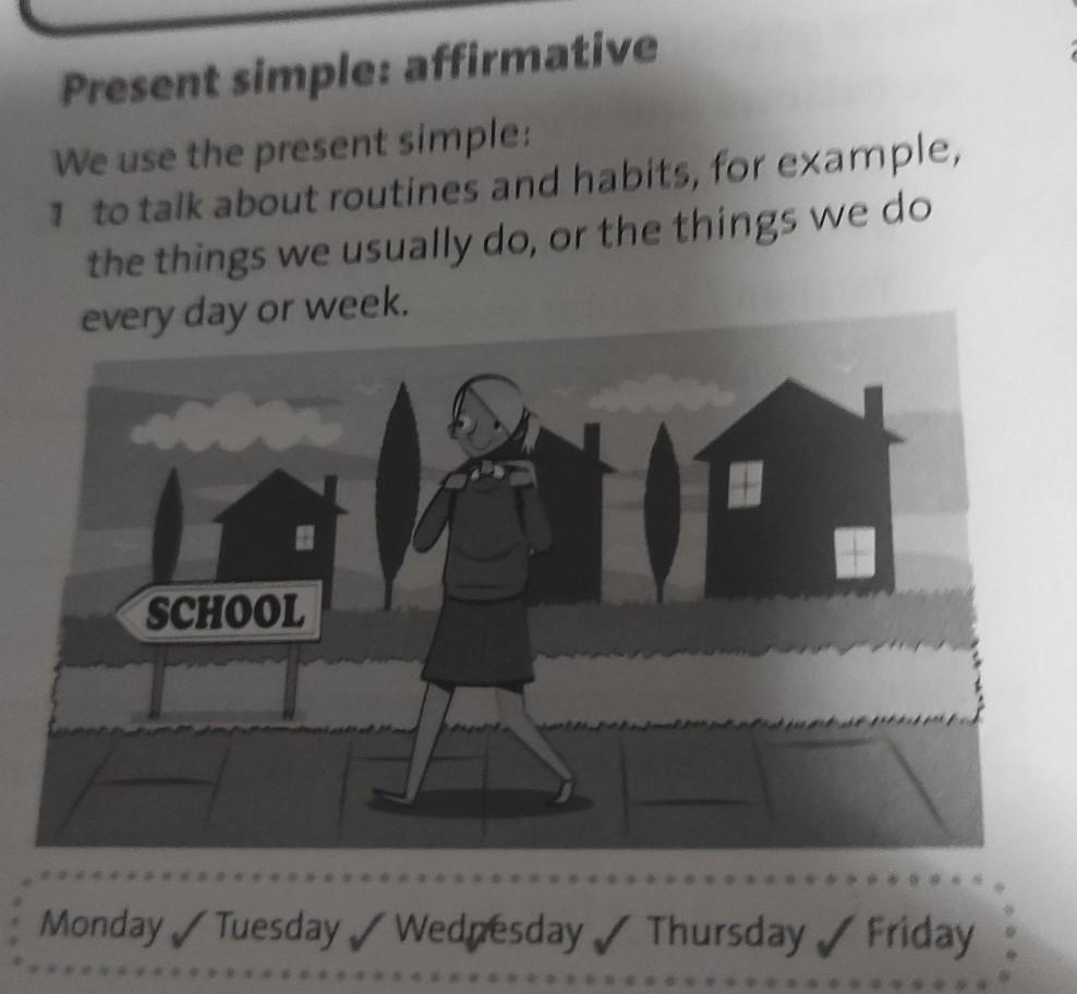 I go to school on monday, tuesday, wednesday, thursday, friday