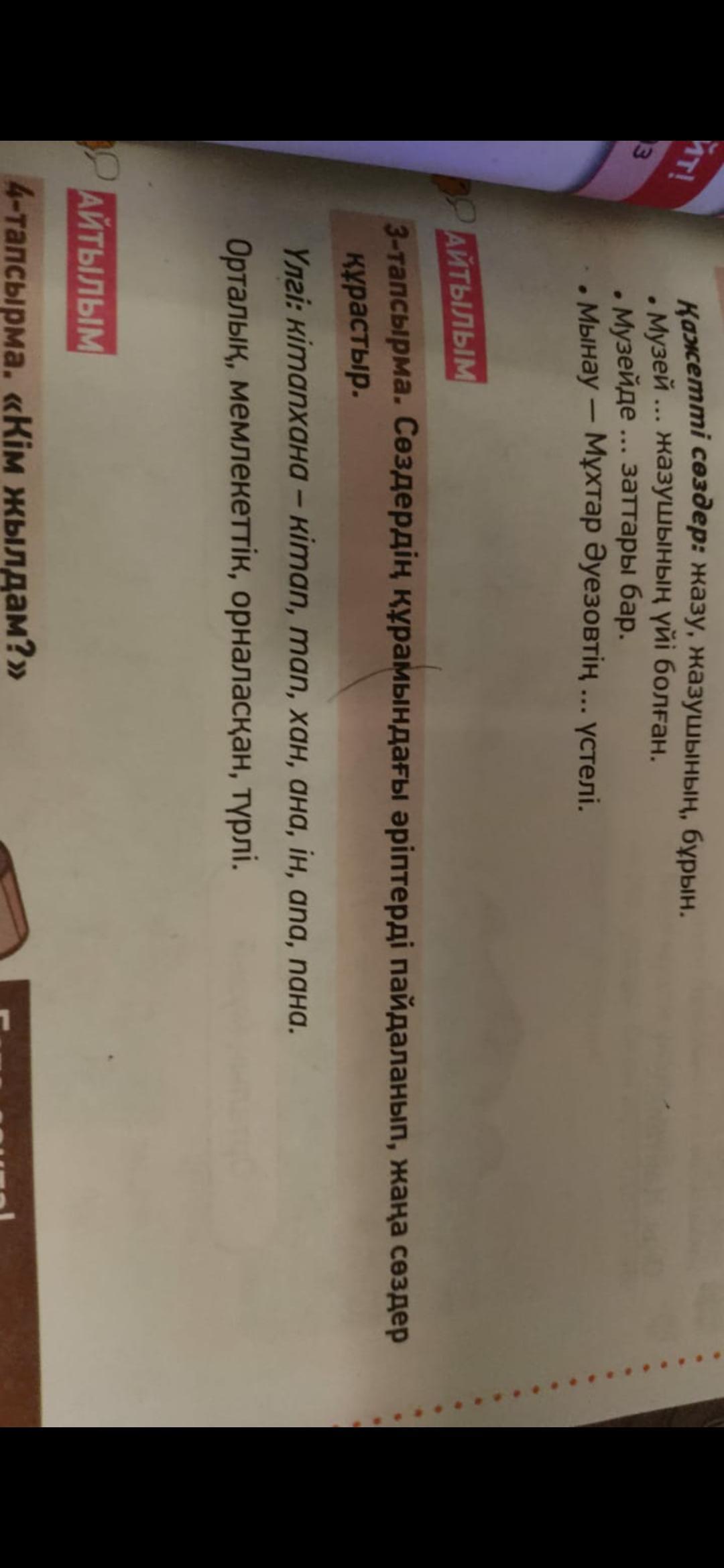 1)Орталық-ортақ,орта,орақ,тал, лақ.