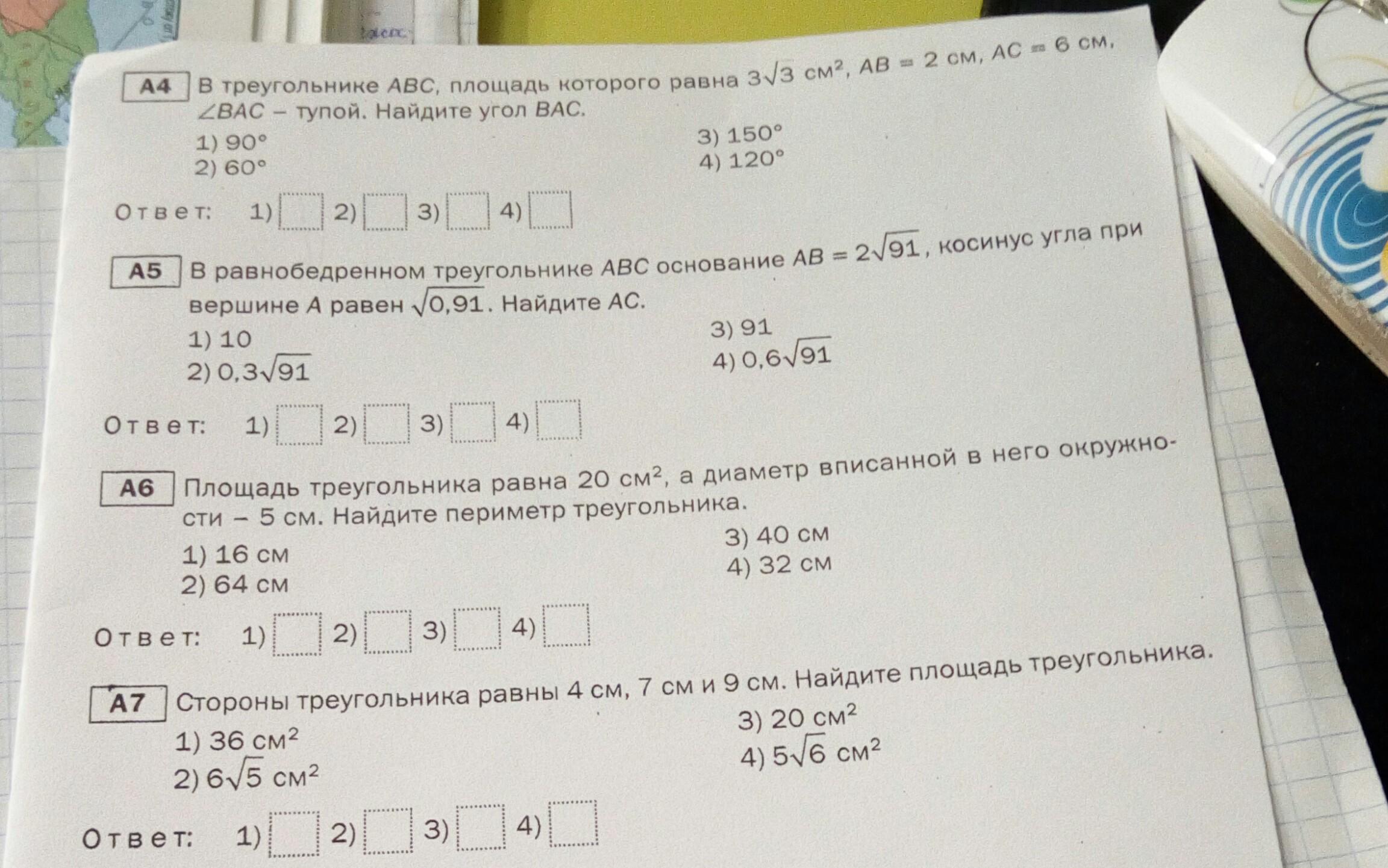 A7. Когда известны стороны ищем площадь по формуле Герона