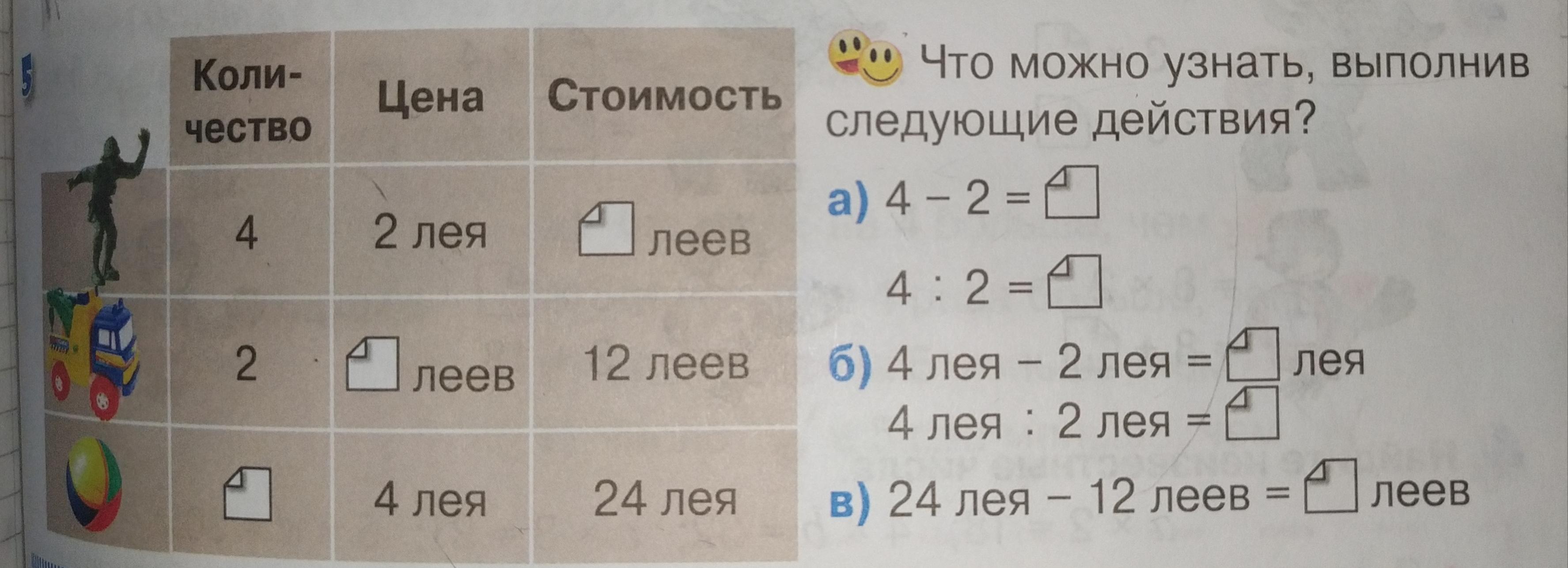 а 4-2 = 2 4:2=2 б 4 лея - 2лея = 2 лея 4 лея : 2 лея =2