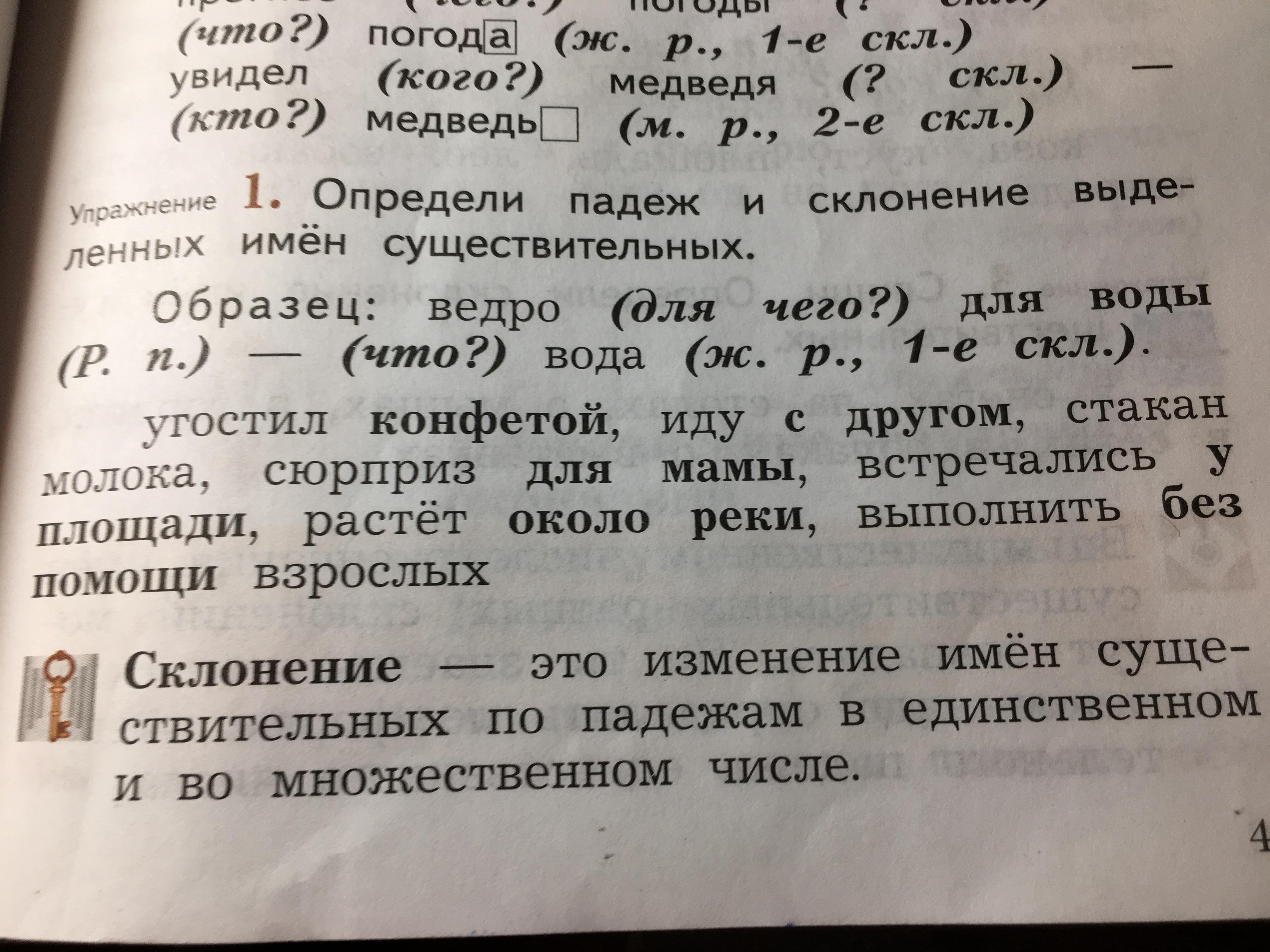ответ:угостил (чем?) канфетой т.п,иду (с кем?) с другом т.п,сюрприз (для кого?)для мамы Р.п,встретились (где?)у площади Д.п,растёт (где?)около реки д.п выполнить (без чего?)без помощи Р.п