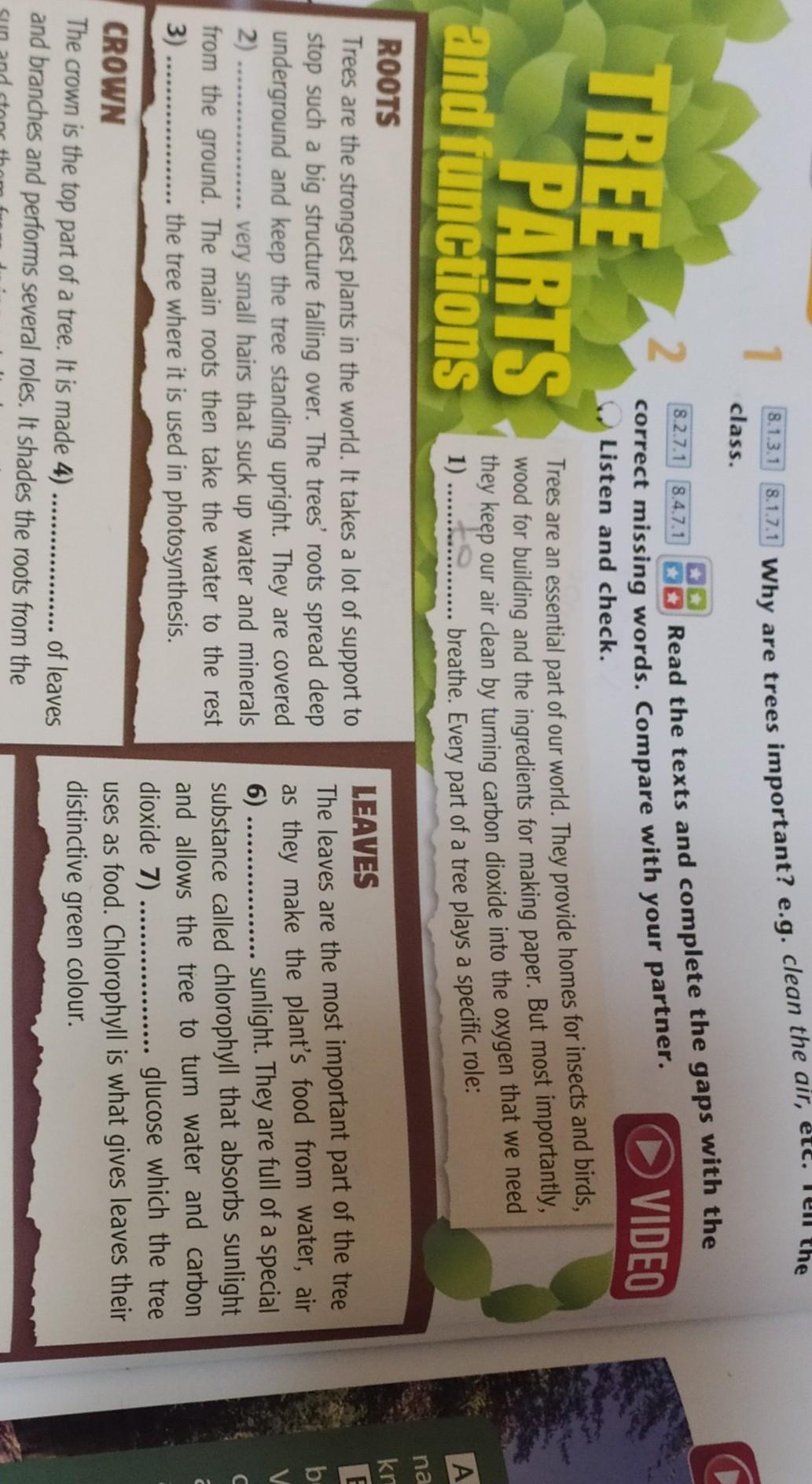 Read the texts and complete the gaps with the correct missing words.Compare with your partner. Tree parts and functions.Plese help