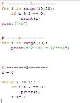 1)С помощью цикла for вывести все четные числа от 10 до 20.