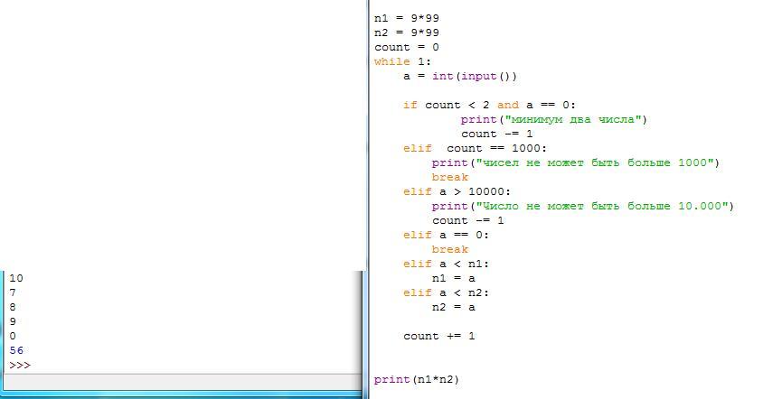 менее двух), последовательность чисел заканчивается числом 0 (0 — признак