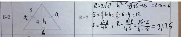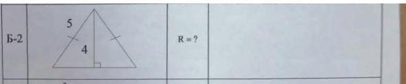 смотря какой класс (какие формулы знаете)) самое простое -через плошадь... основание=3*3=6 (египетский треугольник); S=6*4/2=12; S=abc/(4R) ---> R=5*5*6/(4*12)=25/8