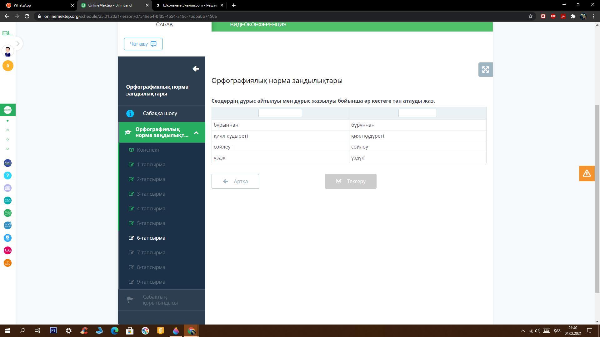 Сөздердің дұрыс айтылуы мен дұрыс жазылуы бойынша әр кестеге тән атауды жаз.