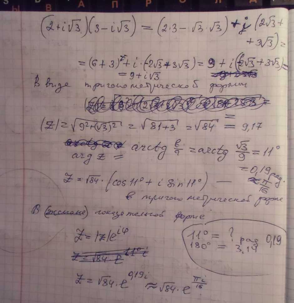 выполнить действия. Результат представить в тригонометрической и показательной формах (2+i корень из 3)*(3-I корень из 3)