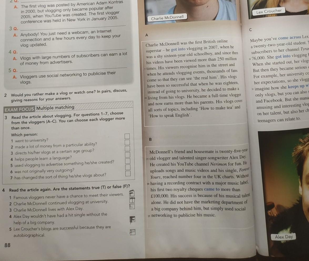 помогите пожалуйста надо по тексту ответить на вопросы и написать правильную букву упражнение 3