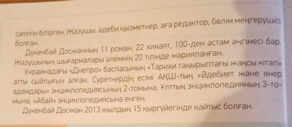 ПОЖАЛУЙСТА ДАЮ 20 БАЛОВ ПРИДУМАЙТЕ И НАПЕШИТЕ 5 ВОПРОСОВ ПО ТЕКСТУ НА КАЗАХСКОМ УМОЛЯЮ СРОЧНО