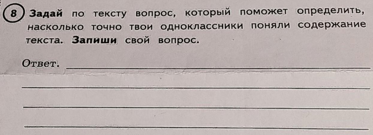 Задай по тексту вопрос, который поможет определить, насколько точно твои одноклассники поняли содержание текста. Запиши свой вопрос.