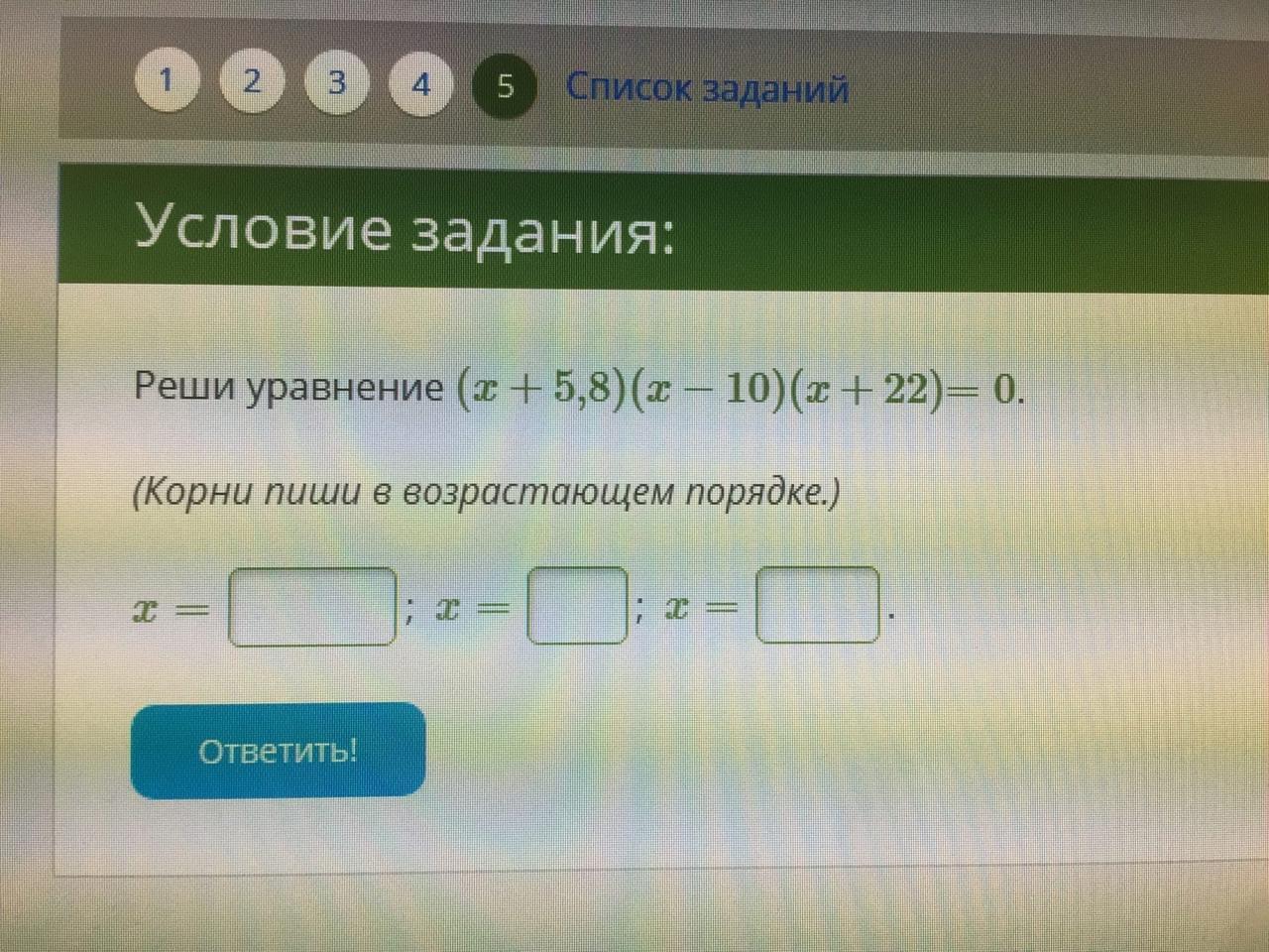 x=-5,8 x=10 x=-22