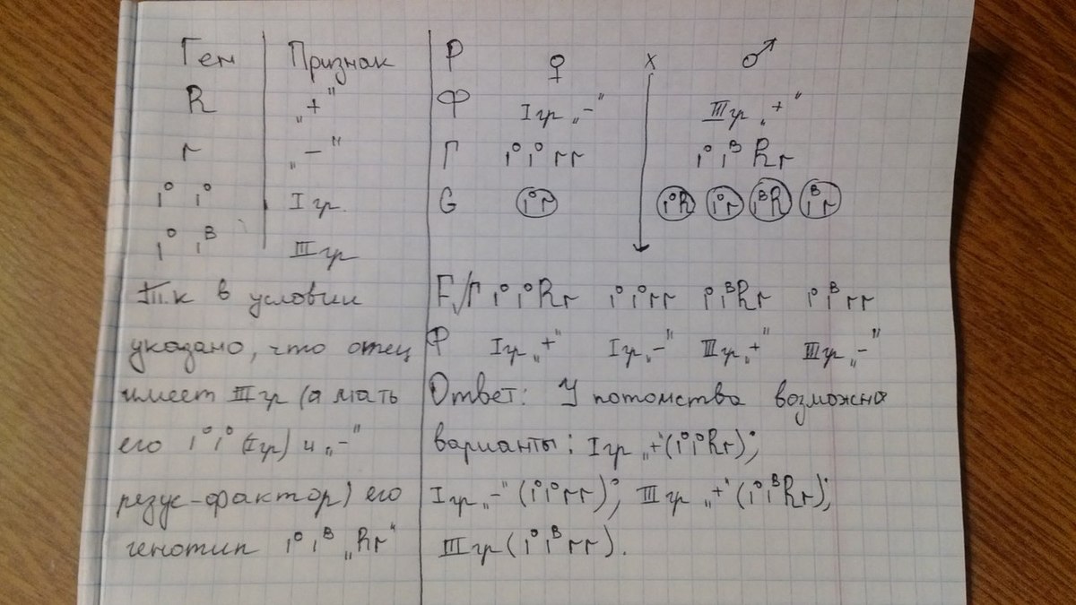 Отец семейства (его мать была rh-, 1группа) Rh+, 3 группа, мать rh- 1 группа. Какие возможны варианты (по группам крови и резус-фактору) у потомства