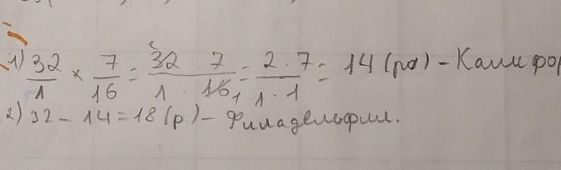 Белла сделала сет из 32 роллов двух видов- Калифорния и Филадельфия. Причем, роллы Калифорния составили 7/16 всех роллов.