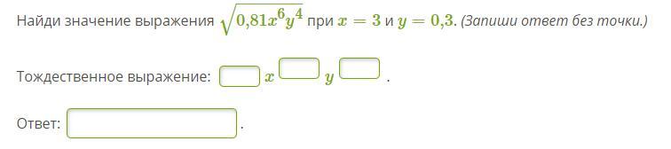 Тождественное выражение 0,81*729*0,0081 все это под корнем. Ответ: 0,9*0,09*27=2,187