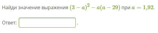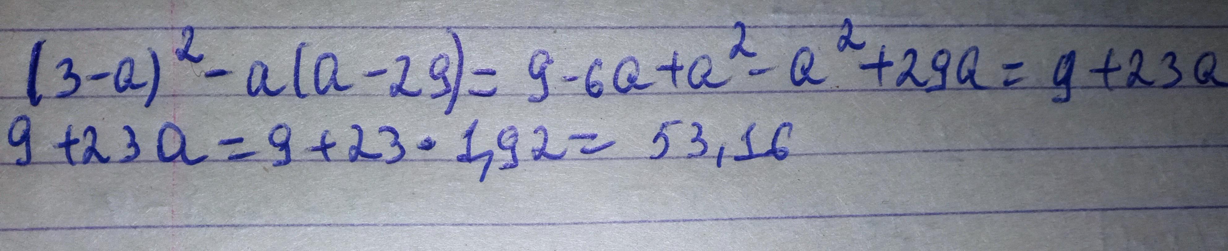 (3 – a)² – a(a – 29) = 9 – 6a + a² – a² + 29a = 23a + 9